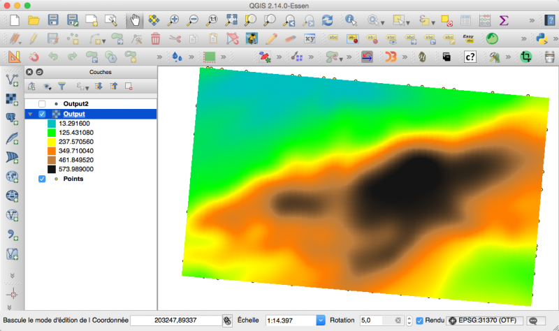 Je vais vous présenter ici quelques traitements supplémentaires sur le raster obtenu par krigeage avec quelques lignes de script pour vous donner l’envie de continuer et d'aller plus loin ...