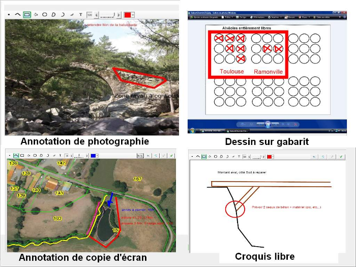 - Annotation et dessin sur les photographies, les extraits de cartes et les croquis