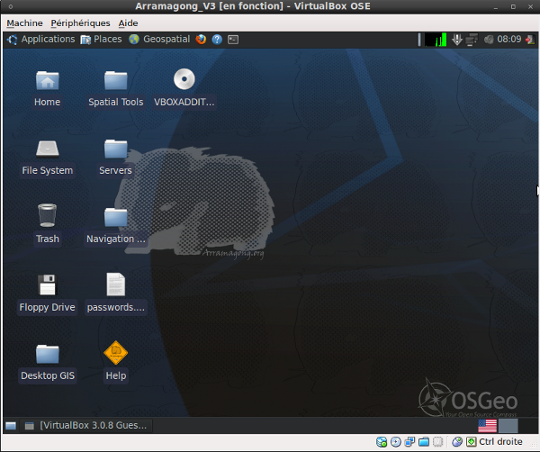 Dans le domaine des SIG, l'OSGEO a créer une image disque regroupant au, sein d'une distribution Xubuntu 9.10, l'ensemble des applications dont pourrait avoir besoin le géomaticien moderne. Ainsi, Arramagong permet de disposer d'un environnement virtuel complètement orienté cartographie.