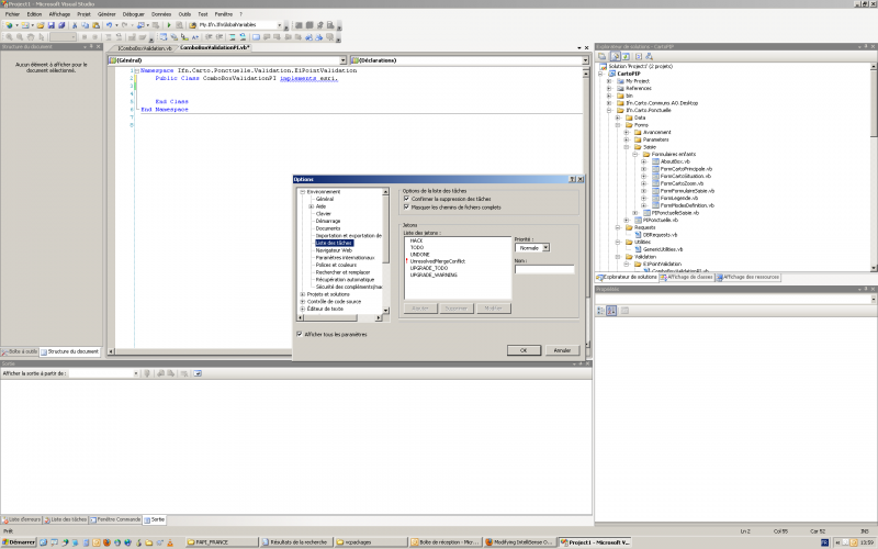 FIGURE 16 : MODIFIER LA LISTE DES MOTS-CLE APPARAISSANT DANS LA FENETRE LISTE DES TACHES DE VISUAL STUDIO.