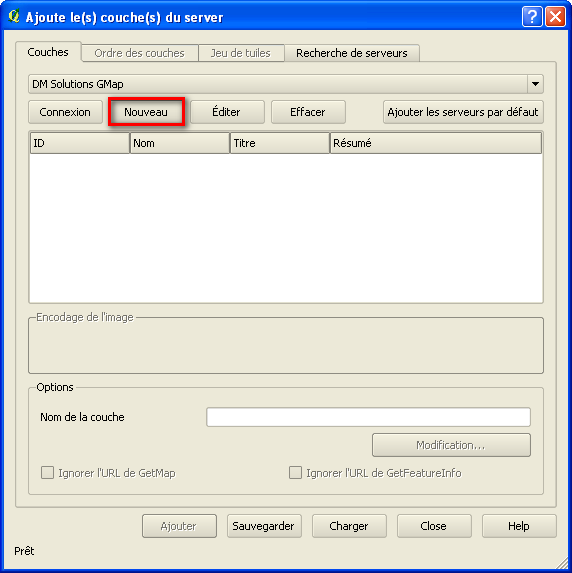 3) Ajouter une nouvelle adresse WMS à votre logiciel en cliquant sur "nouveau"