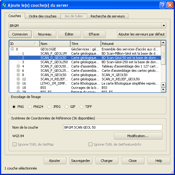 7) Choisissez le nom de la couche (= fond de données) qui va être ajoutée et faites "ajouter"
