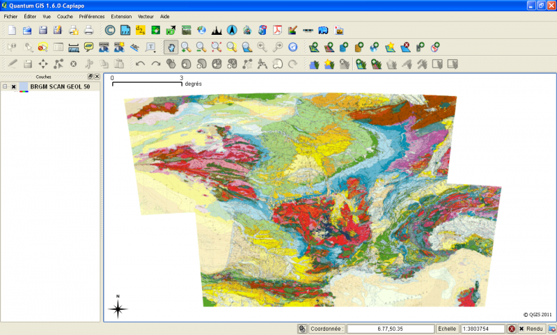 Ainsi, vous avez la possibilité de visualiser les données géologiques de toute la France dans votre SIG. Vous pouvez ainsi ajouter vos données personnelles ou saisir des données : si nécessaire, vous pouvez mettre votre image de fond en transparence (double cliquez sur le nom de la couche).