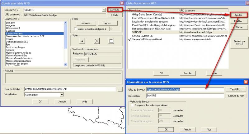 J'ai bien suivi le protocole redétaillé ici pour accéder aux données en flux WFS depuis Mapinfo V 10.5 mais une erreur "impossible d'établir une connexion avec le serveur " s'affiche dès le clic sur l'accès aux WFS.