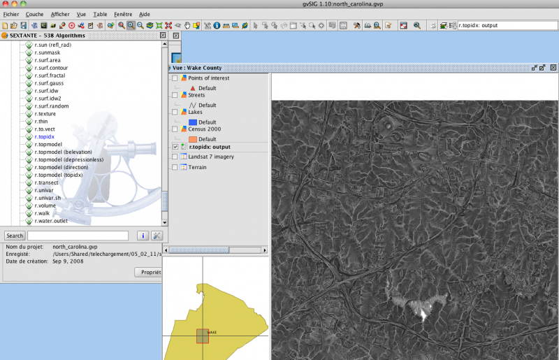 Tous les traitements ont été effectués sur Mac OS X avec gvSIG Oade 2010 version 1, gvSIG 1.10 et GRASS GIS 6.4.1 RC1
