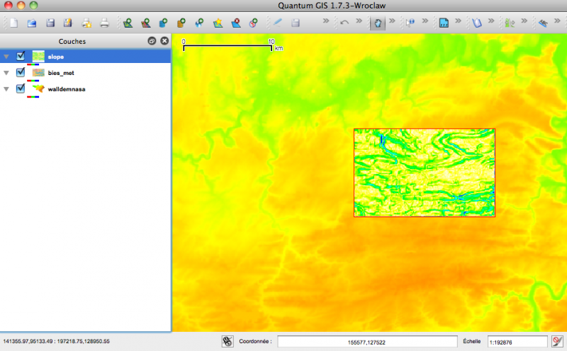 - la région doit donc être redéfinie pour couvrir l'emprise du raster: