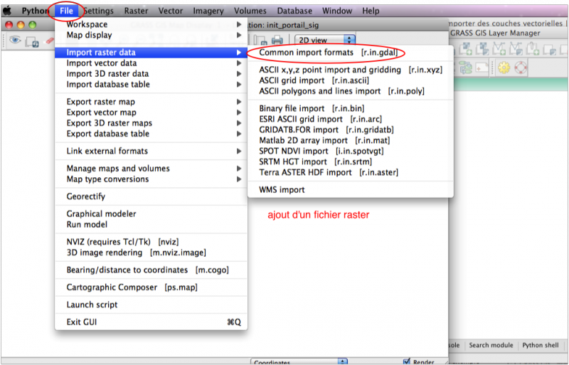 L' importation d'une couche raster dans GRASS GIS nécessite donc: