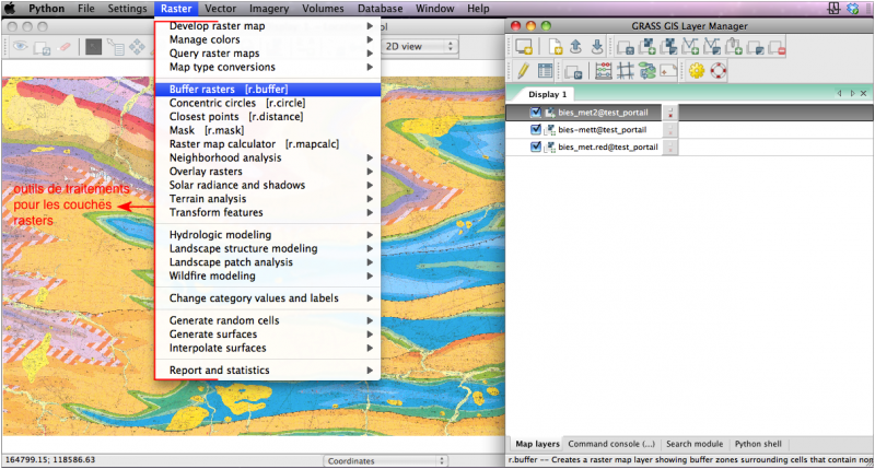 Il faut aussi noter que dans GRASS GIS, toutes les commandes peuvent être effectuées de diverses manières: