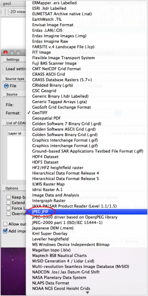 Et il y a aussi de nombreuses possibilités d'importation (encore plus !) et nous choisissons d'importer une couche avec l'option Common import formats (r.in.gdal) qui est la plus générale. Elle permet d'importer tous les formats disponibles dans la bibliothèque GDAL (les autres possibilités les plus intéressantes sont tous les ASCII, r.in.xyz, r.in.ascii, r.in.polygons er r.in.arc pour les fichiers textes de type xy(z) ou grilles (grid).