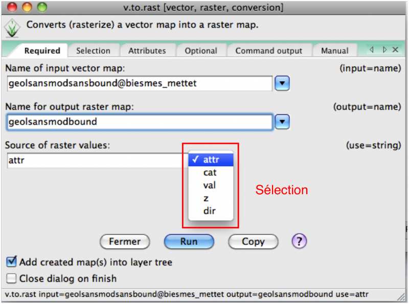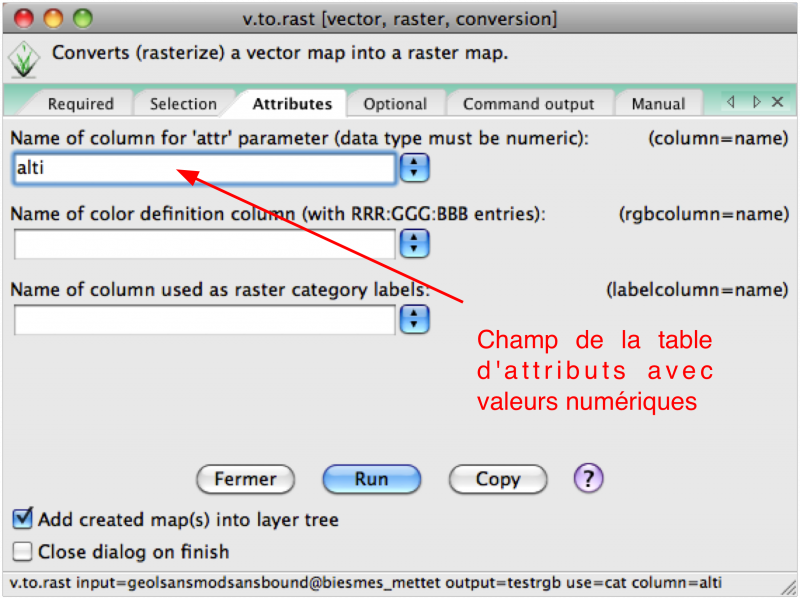 - attr - valeurs d'un champ de la table d'attributs (numérique)