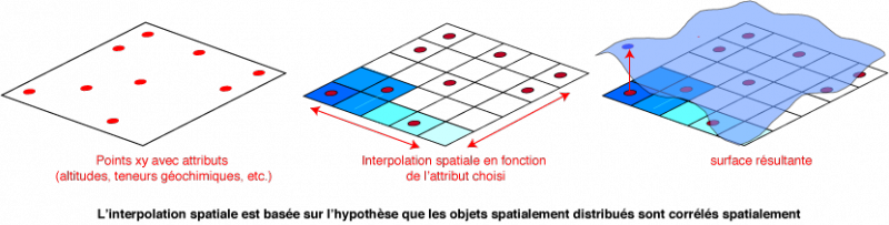 Je suppose aussi que si vous lisez cet article, vous connaissez les principes et les méthodes de l'interpolation spatiale et je ne reviendrai pas en détail sur le sujet (il existe de meilleurs tutoriels que ceux que pourrais faire, notamment ceux d'ESRI) pour me focaliser sur leur application dans GRASS GIS.