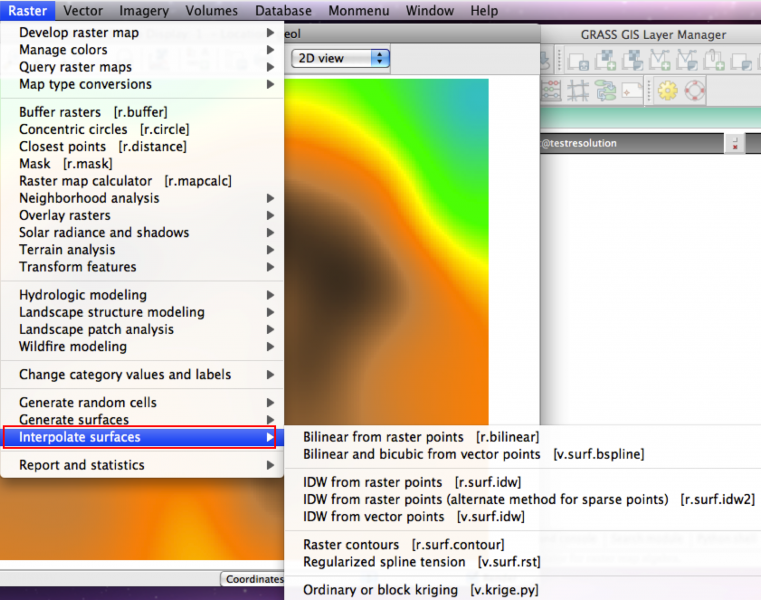 Les puristes diront certainement « oui, mais il faut que ces programmes supplémentaires soient aussi installés, ce qui n'est pas le cas dans d'autres logiciels SIG où tout est disponible nativement ». Et alors, pourquoi refaire deux fois la même chose, vive la collaboration et aux utilisateurs de GRASS, la puissance d'extensions comme gstat !