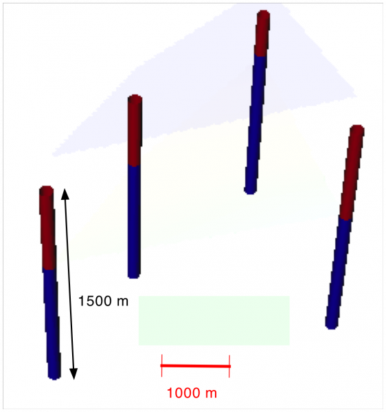 Comme je suis géologue, lorsque la méthode est adéquate, je montrerai aussi comment créer une surface à partir des couches recoupées par des sondages (limite ensemble bleu - ensemble rouge):