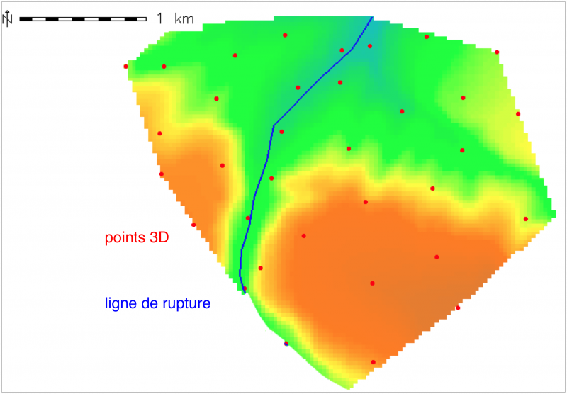 Il est nécessaire que les deux couches vectorielles (points + ligne(s) de rupture) soient des couches 3D.