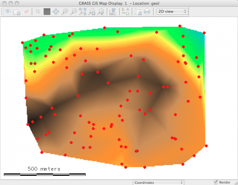 GRASS GIS pas à pas pour les débutants: 7 - les modules d'interpolation spatiale: introduction, passage d'une couche vectorielle à une couche matricielle (v.to.rast) et d'une couche vectorielle 2D à une d'une couche vectorielle 3D (v.to.3D, v.drape)