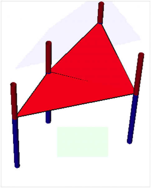 Dans le cas de points 3D comme ici, le résultat est une couche vectorielle 3D de type surfacique (polygone avec faces):