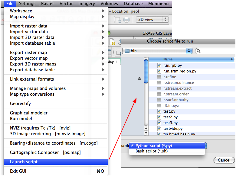 Mais il serait intéressant de créer notre propre menu dans l'interface de GRASS pour le lancer.