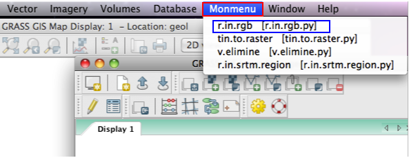 Création d'un menu personnalisé dans la barre des menus de GRASS GIS