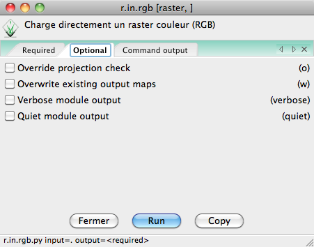 - output qui est le champ où l'on indique le nom de la couche résultante dans GRASS;