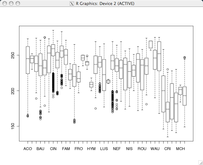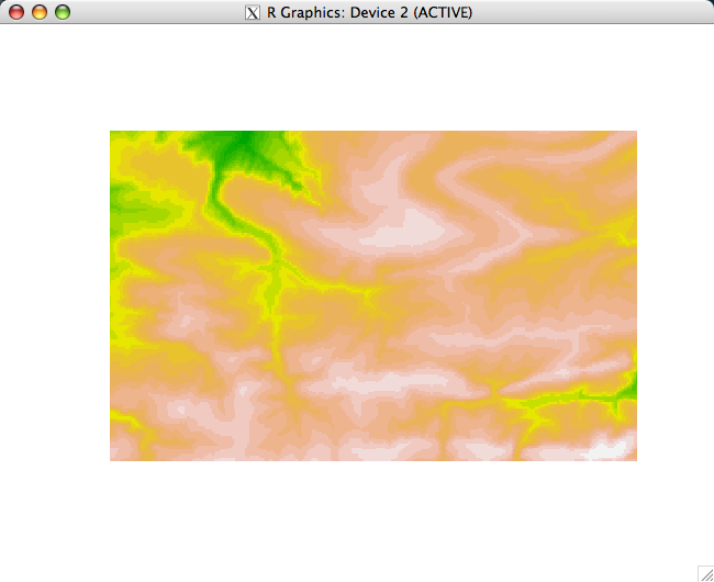 "Foin d'une interface graphique élaborée !", tout se fait dans le langage de R. Plusieurs livres ont été écrits à son sujet (www.r-project.org/doc/bib/R-books.html , avec, notamment pour l'analyse géospatiale, "Applied Spatial Data Analysis with R" www.springer.com/public+health/epidemiology/book/978-0-387-78170-9). Le chapitre 10 du livre "Open Source GIS: A GRASS GIS Approach" (www.grassbook.org/) est consacré à ce sujet. Des sites comme bm2.genes.nig.ac.jp/RGM2/index.php ou addictedtor.free.fr/graphiques/ se proposent de montrer toutes ses facettes sous forme visuelle (plus de 21000 graphiques pour le premier cité), accompagnés des commandes permettant de les réaliser. Ses domaines d'application sont donc extrêmement variés et ce n'est pas la maigre petite application qui suit qui lui rendra justice...