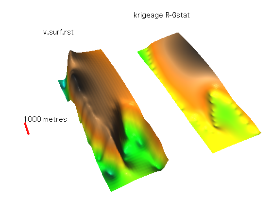 surface obtenue avec v.surf.rst surface obtenue avec R et le krigeage simple