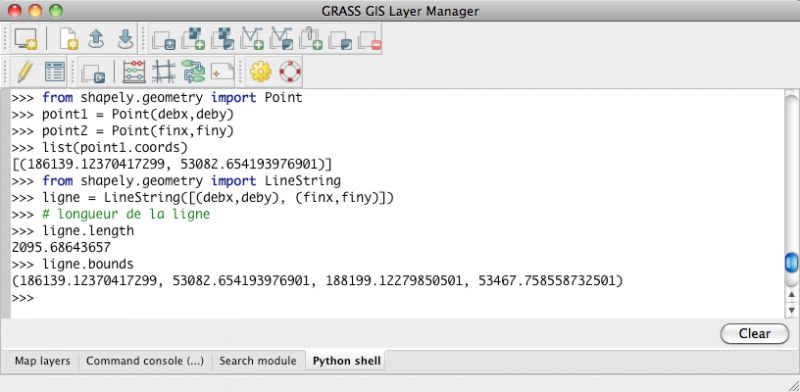 Il est tout à fait possible d'utiliser dans la console d'autres modules Python pour traiter les données, comme Shapely, ce qui devient beaucoup plus intéressant pour ceux qui les connaissent bien: