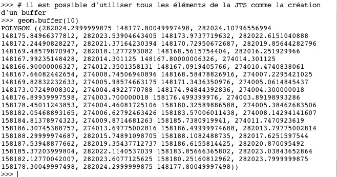 JTS ne possède pas d'implémentation Python, mais nous avons vu que Jython permet d'employer n'importe quelle classe Java. Alors certains ont agi...