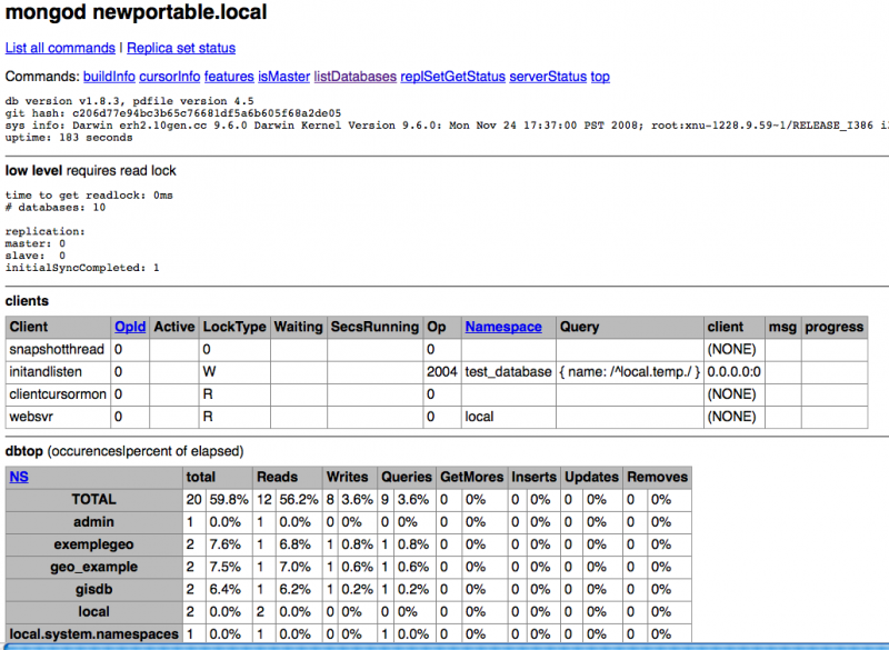 MongoDB offre une interface REST en version alpha (voir www.mongodb.org/display/DOCS/Http+Interface) visible en local sur http://localhost:28017/