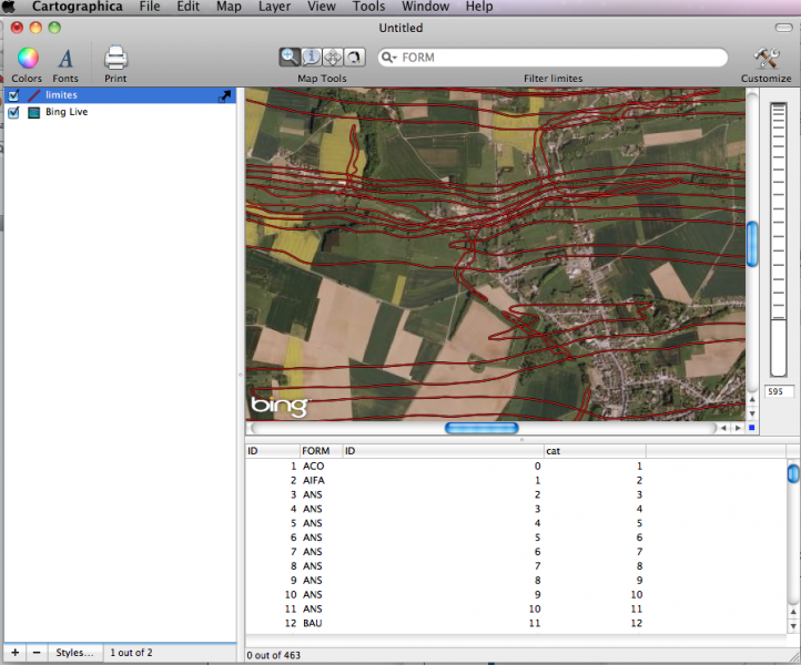 - Cartographica permet aussi d'utiliser les couches WMS et WFS et les couches Bing Maps et OpenStreetMap.