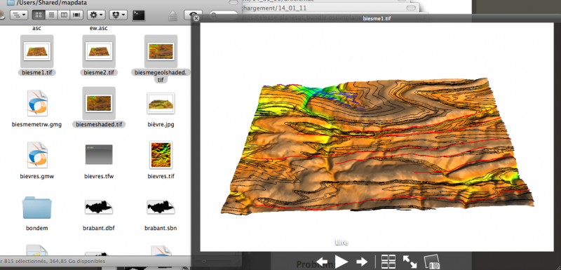 - http://jenny.cartography.ch/gislook/, plutôt que des applications, ce sont des extensions qui permettent d'afficher tous les formats géospatiaux (vecteur et raster) dans le Finder (sous forme de vignette-image).