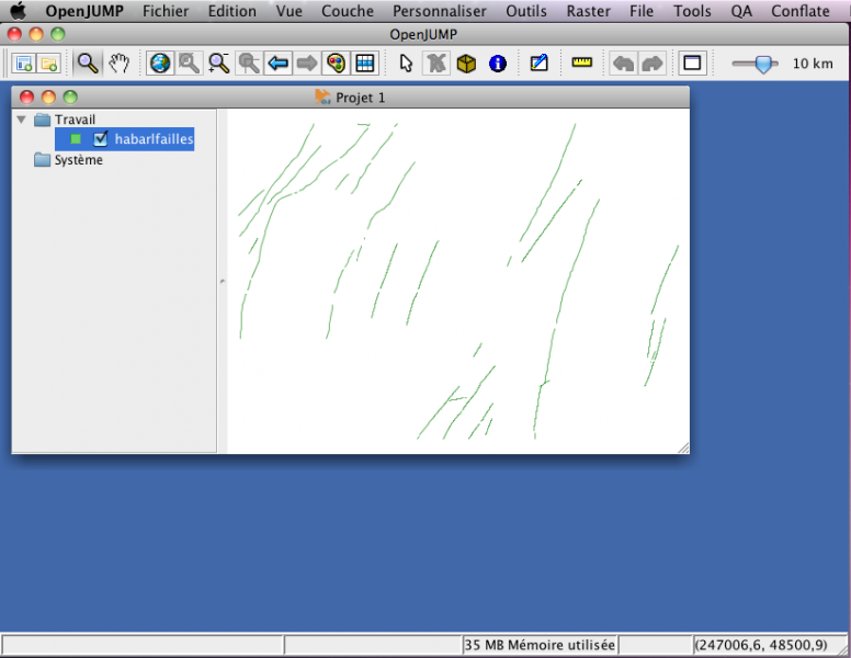 - www.openjump.org/, est le dernier avatar de la série des JUMP. Il s'installe maintenant sans aucun problème, extensions comprises (hormis quelques exceptions), ce qui n'était pas le cas des anciens JUMP. Ce n'est pas encore le cas de Kosmo (www.opengis.es/index.php) dont la version Linux (Java) semble marcher sur Mac de prime abord, mais ne parvient à ouvrir aucun fichier.