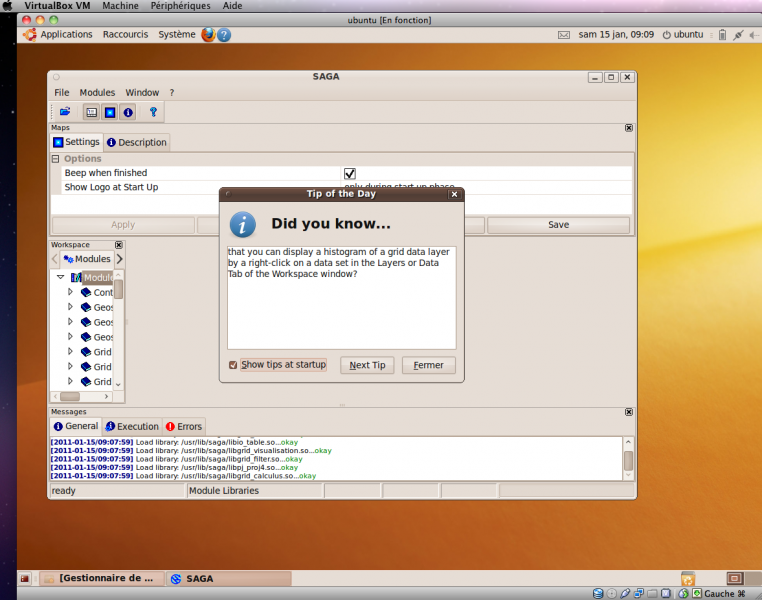 SAGA GIS sous Ubuntu avec VirtualBox: