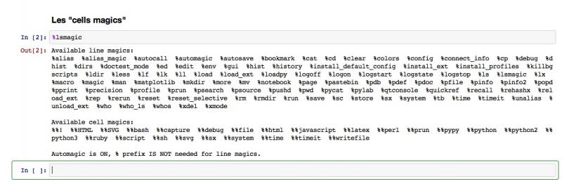 - modifier le comportement du shell Python (comme %matplotlib inline dans l'exemple précédent), nommées magics