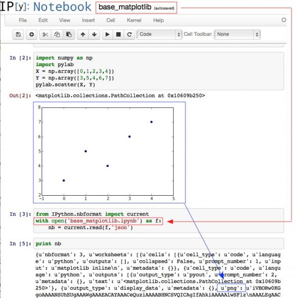 Les fichiers résultants sont enregistrés au format JSON (fichiers .ipynb) et il est possible de constater qu'une fois les traitements terminés et le fichier sauvegardé, ce sont des fichiers statiques: tout est conservé, même les figures (figure au format png binaire ici).