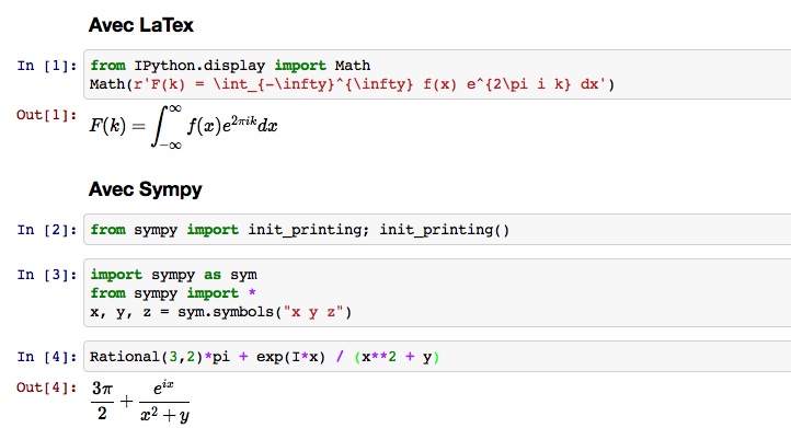 De nombreux autres formats sont aussi supportés (HTML , images, videos, équations LaTex,voir IPython's Rich Display System ou Latex footnotes, citations, etc. in IPython Notebook). Voir, à titre d'exemple mes IPortail SIG et Purcell A.Deller.