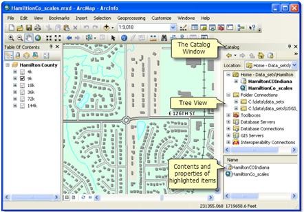 ArcCatalog inclus dans ArcMap : permet de faire glisser plus facilement les données d’ArcCatalog à ArcMap dans l’affichage des données. Il n’y a plus de problème de « lock » lorsque par exemple, on désire éditer une donnée qui est également observable dans ArcCatalog.