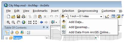 Ajout de cartes/couches à partir d’ArcGIS online dans ArcMap et vice et versa avec un accès rapide. Pour ajouter des données d’ArcGIS online, avoir une connexion internet et faire ajouter des données.