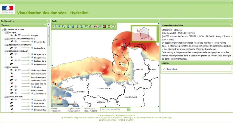 Image 2: Aperçu du visualiseur sur le thème de l'hydrolien (source: Géolittoral)