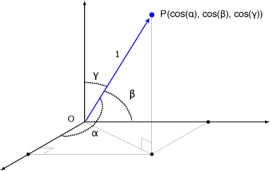En 3D ce sont les 3 cosinus directeurs qui seront surtout utilisés: