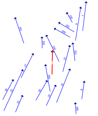 Un bel exemple a été récemment proposé par Riccardo Klinger dans How to create a wind map in QGIS suite de How to create a wind map in ArcGIS. Les données de départ sont des valeurs directionnelles circulaires (direction des vents) et scalaires (vitesse du vent). Les auteurs effectuent une des interpolations directement sur les valeurs angulaires et apparemment ça marche, car par chance, toutes les valeurs qu'ils traitent se situent entre 0 et 180° (le fichier shapefile original peut être téléchargé).