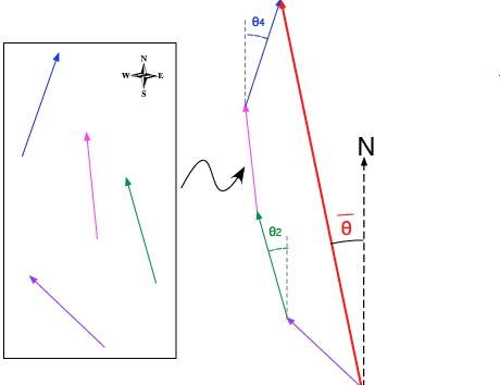 La direction moyenne est alors calculée par les règles trigonométriques classiques, c'est: