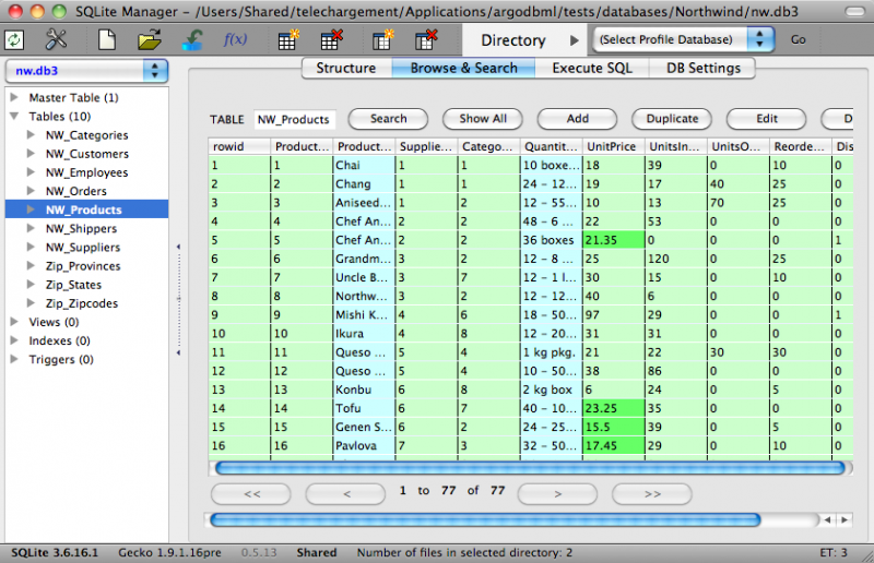 A titre d'exemple, la base de référence Northwind.mdb sera convertie en base SQLite
