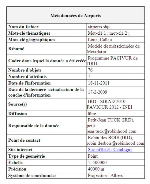 Attention, les noms de champs sont sensibles à la casse. Les balises html de base peuvent être utilisées pour une meilleure mise en forme lors de l'export par Metadator.