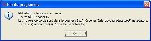 Une fois l'archive décompressée, lancer Metadator.py depuis l'IDE ou la console Windows (lancement plus lent) :