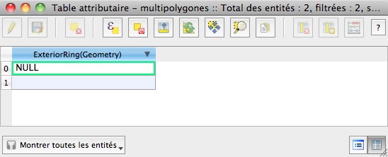 Attention, tout n'est pas possible. Ainsi si je veux extraire les limites de polygones (ExteriorRing()), cela ne marchera pas s'il y a plusieurs polygones dans une couche: