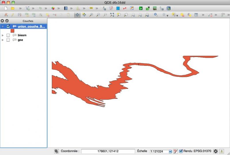 - il y a aussi moyen d'effectuer des opérations géométriques simples comme l'union entre 2 couches: