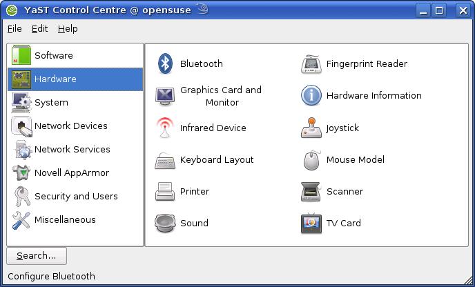 Il est possible d'avoir un bon niveau sur Windows sans pour autant pratiquer la ligne de commande ce qui n'est pas le cas avec la majeure partie des distributions Linux. C'est là qu'OpenSuse se rend accessible grâce à son outil YAST (Yet Another Setup Tool) qui fourni un panneau de configuration entièrement graphique vous permettant de paramétrer votre matériel, vos préférences sur l'interface mais également d'administrer les utilisateurs, la sécurité. L'installation des logiciels s'effectue par YAST en faisant une simple recherche sur le DVD ou en rajoutant d'autres URL afin de trouver plus de logiciels (ou "paquets").