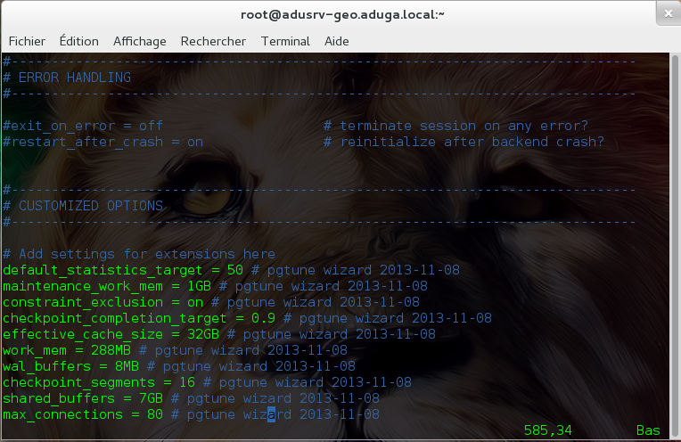 Si le service ne redémarre pas, c'est que les paramètres pgtune ne sont pas bons.