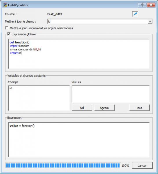 Si vous souhaitez mettre différentes couleurs pour les îlots vous pouvez recréer une colonne dans votre couche "îlot" et attribuer un chiffre entier au hasard entre 1 et x (x étant le nombre de couleurs différentes que vous souhaitez attribuer aux îlots) ce qui vous permettra d'attribuer au hasard une classe à chaque îlot. Dans QGis 2.0 cette fonction est disponible en natif dans la calculatrice de champ (fonction math -> rand) pour les versions antérieures il faudra passer par un script en python ou par l’installation du très utile plugin FieldPyculator et utiliser la fonction python suivante :