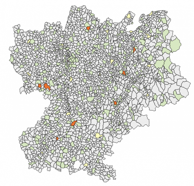 Les communes sont représentées en fonction de leur statut, c'est à dire :
